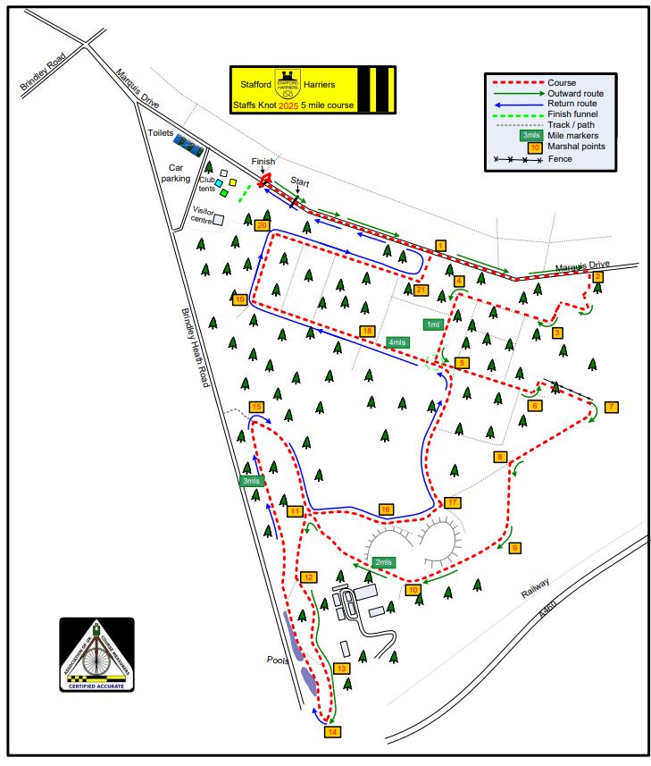 The course was measured on 8 June 17 by Rob Cope, a member of the Association of UK Course Measurers and was certified accurate. He was accompanied by club member, Ian Hodkinson